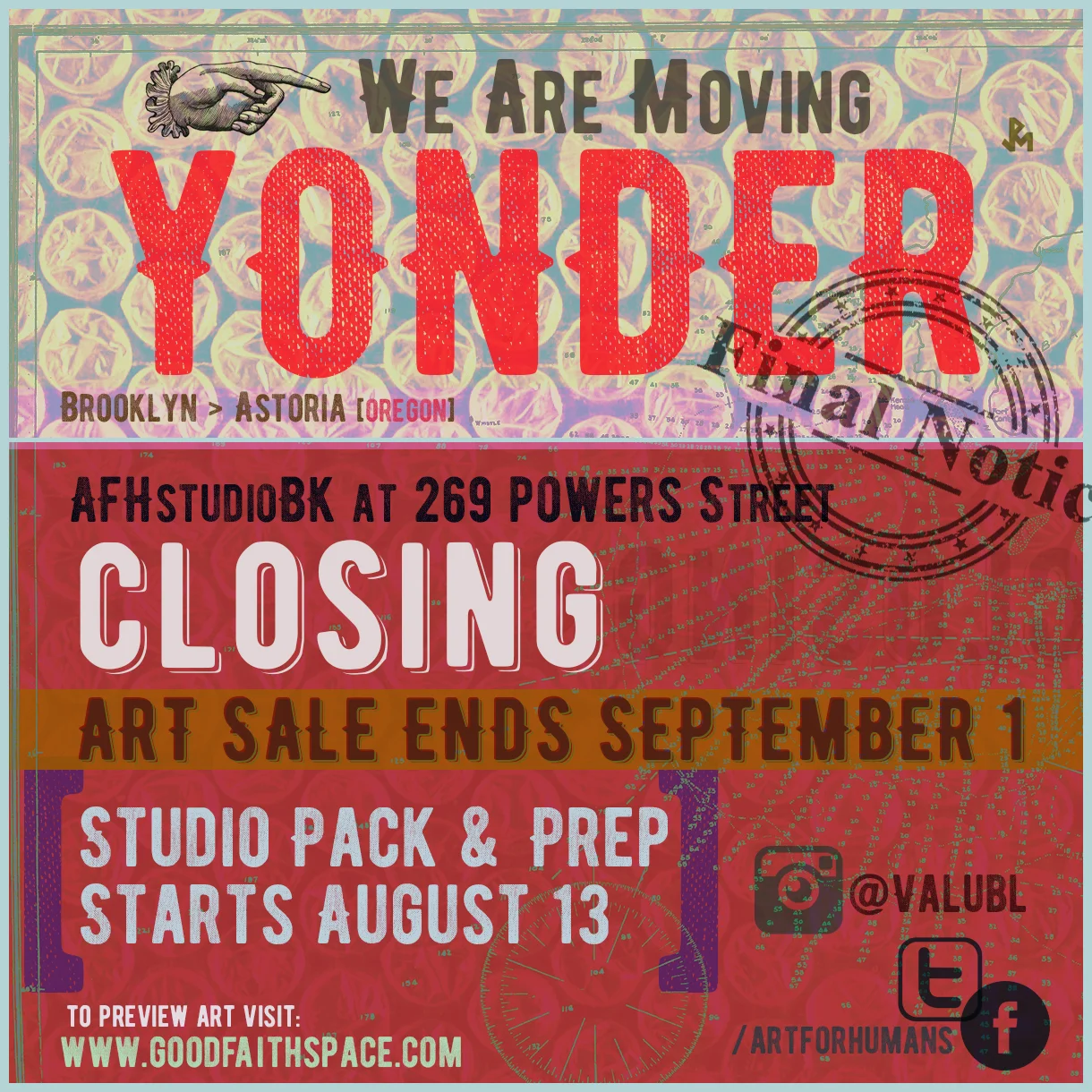 What's new at Good Faith Space and Art for Humans? AFHstudioBK closed... We are moving to Astoria [Oregon]... We had a successful Labor Day Sale! Plus much more!